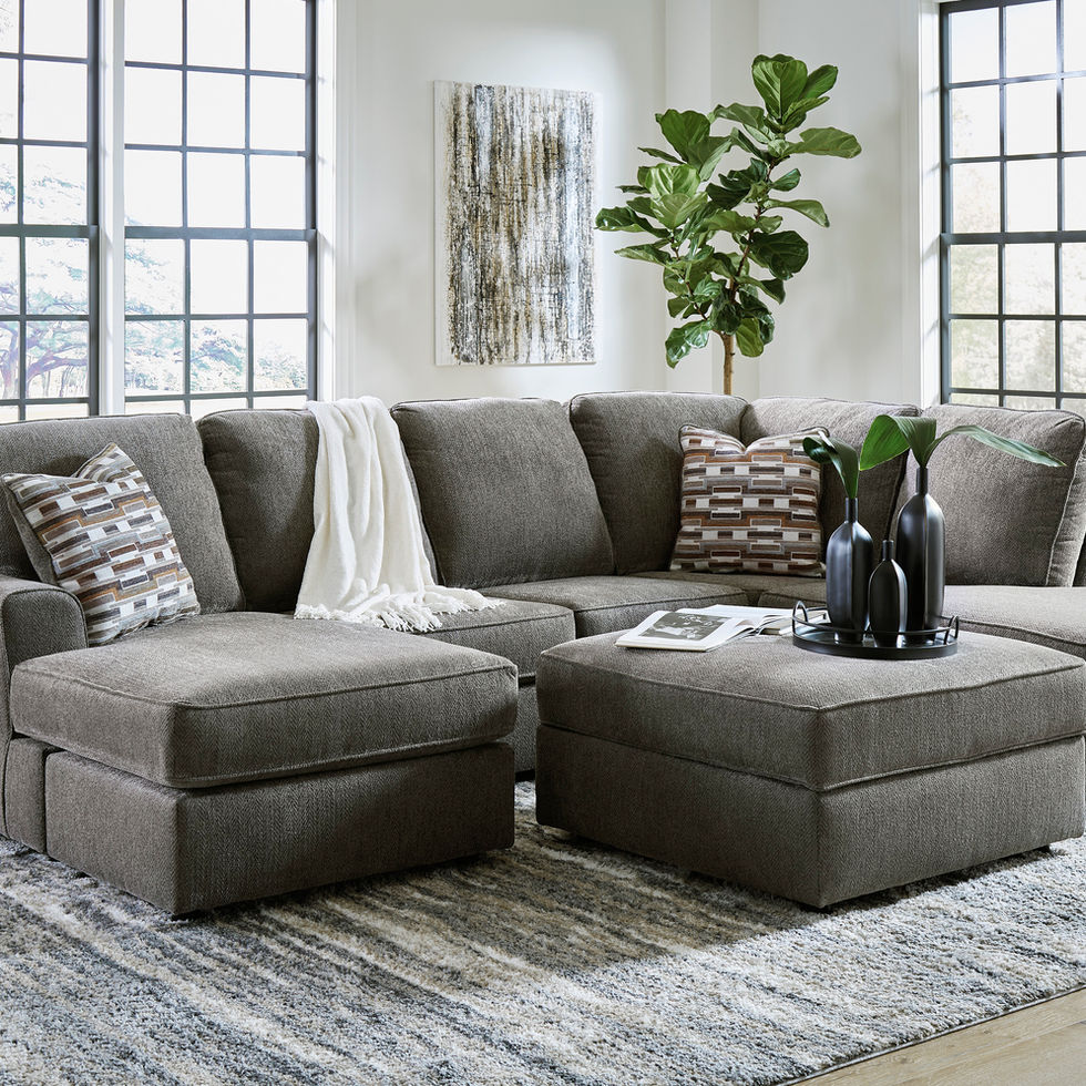 Complete your at-home retreat with the casually chic O’Phannon sectional with chaise. The luxe herringbone chenille upholstery is indulgently plush to the touch. With its clean-lined construction, this sectional seamlessly pairs with contemporary aesthetics, making it an ideal centerpiece for your curated space.